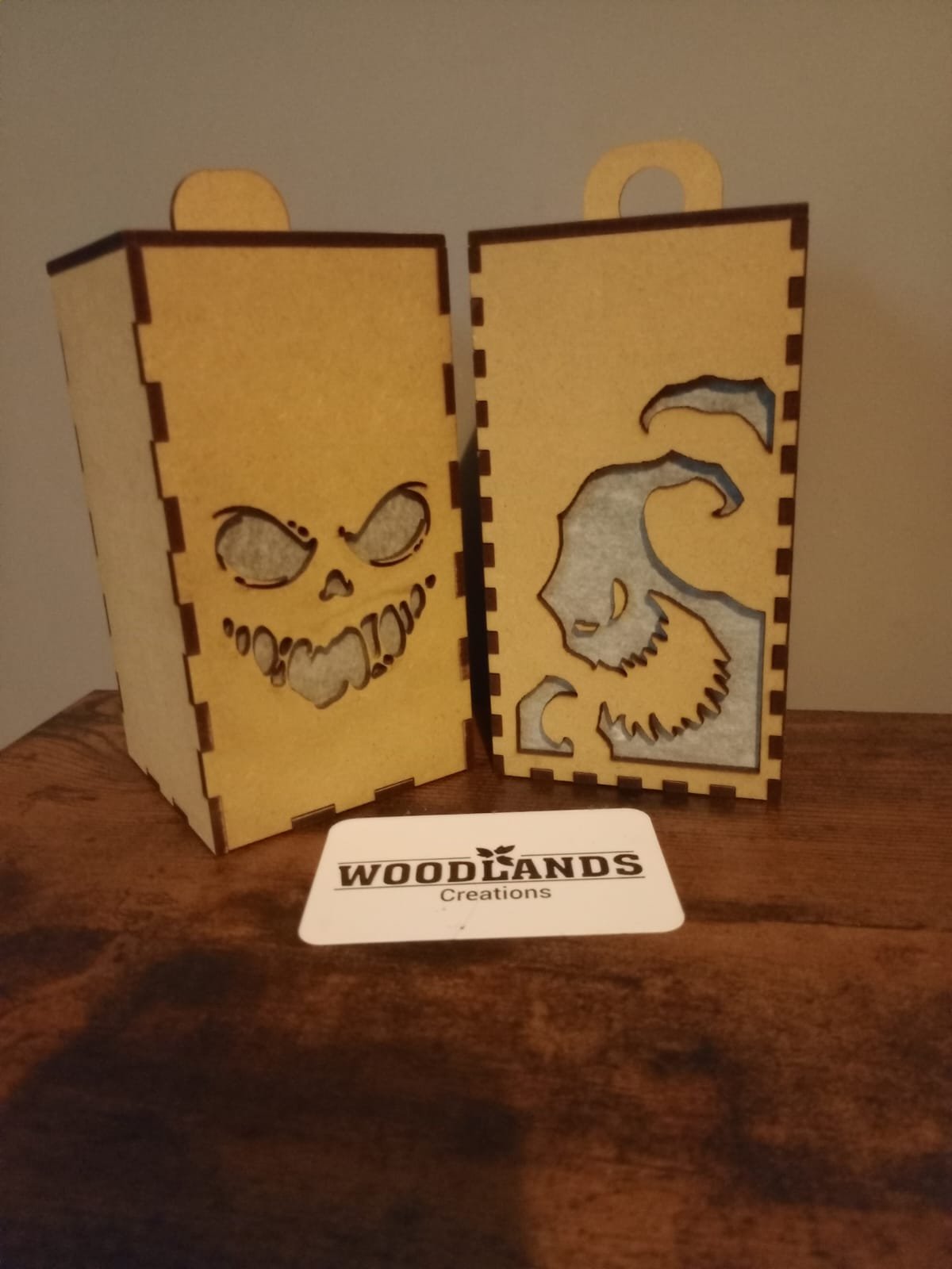 These aren’t your average lanterns—they’re laser-cut legends! Each box is a mini masterpiece, featuring bold cut-out designs that glow with personality. From the heart-nosed skull that’s equal parts spooky and sweet, to the horned mystery figure that whispers tales of folklore and fantasy, these lanterns are made to intrigue, amuse, and enchant.